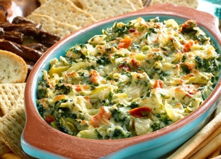 Spinach and artichoke dip is a creamy and savory dish made from spinach, artichokes, cheese, and a blend of seasonings. It’s typically served warm, offering a rich and comforting texture. Perfect as a party appetizer, it pairs well with chips, bread, or vegetables.